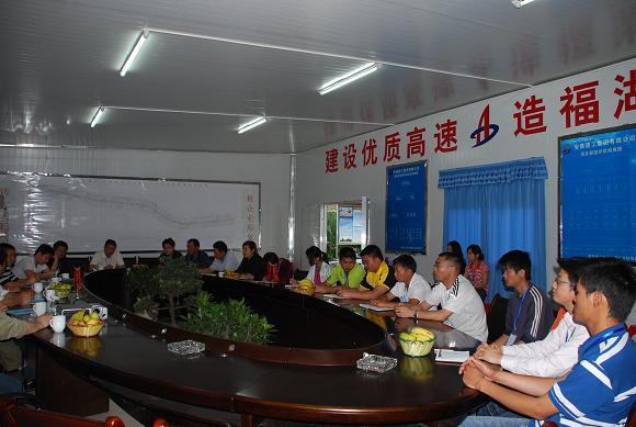 在聽(tīng)取了項目部負責人的匯報后,胡董事長(cháng)對項目部的人員、設備配置,管理流程以及工程進(jìn)展表示滿(mǎn)意,對大家所作的努力給予了肯定。他強調,一要在保證工程質(zhì)量和安全前提下加快施工進(jìn)度,特別是在當前雨季,要科學(xué)安排工序,細化施工計劃,確??傮w工程進(jìn)度;二是要處理好與業(yè)主、監理、地方等方面關(guān)系,營(yíng)造良好的施工環(huán)境;三要建立完善管理流程,確保各項工作有序運轉;四要加強項目文化建設,做好文化理念宣貫,打造安徽建工品牌。
