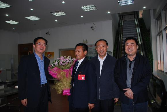 10月19日下午,安徽建工集團董事長(cháng)、總經(jīng)理胡運成,副總經(jīng)理、安徽三建公司總經(jīng)理劉家靜及有關(guān)同志前往機場(chǎng)迎接出席中國共產(chǎn)黨第十七屆中央委員會(huì )第五次全體會(huì )議先期回肥的安徽代表——省委副書(shū)記王明方和安徽三建公司職工李朝進(jìn)。工作人員向王明方書(shū)記和李朝進(jìn)同志獻上了鮮花,以表達歡迎和喜悅之情,并與他們合影。王明方同志對安徽建工近年來(lái)的快速發(fā)展給予了高度評價(jià),并指出朝進(jìn)同志作為黨代表出席十七屆五中全會(huì ),這是朝進(jìn)同志的光榮,也是安徽建工的光榮,安徽建工的快速發(fā)展需要象李朝進(jìn)同志一樣的大批職工。