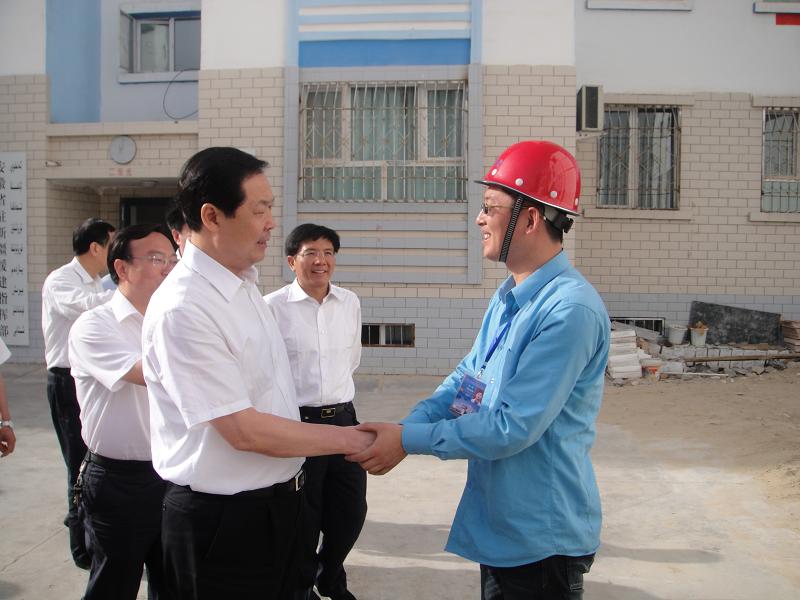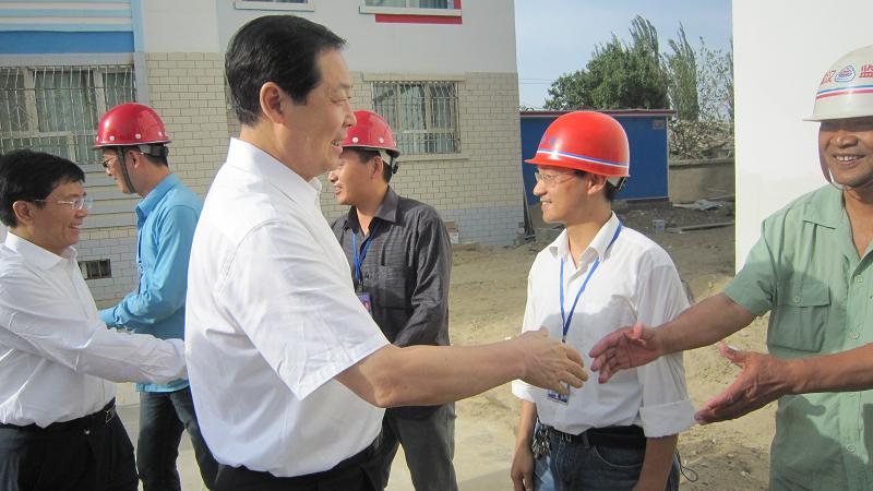 在施工現場(chǎng),張寶順等興致勃勃地參觀(guān)了援疆干部保障樓工程的建設,并認真聽(tīng)取了援疆指揮部指揮長(cháng)聶愛(ài)國和工程項目經(jīng)理樊剛對工程情況的介紹。當了解到工程進(jìn)度、質(zhì)量、安全文明等情況良好時(shí),張寶順十分滿(mǎn)意。他指出:援疆干部保障樓工程是關(guān)系到安徽省援疆干部的生活問(wèn)題,只有解決了后顧之憂(yōu),援疆的同志們才能更好的把精力投入到援疆的事業(yè)中去。安徽三建做的很好,保障樓做的很漂亮,在這里的同志們也很辛苦,工程按照省委省政府的要求,搶抓時(shí)間,高質(zhì)量嚴要求的完成了,希望再接再厲,做好后續建設工作。