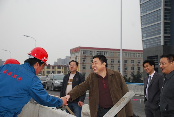 胡董事長(cháng)一行首先視察了即將完工的合肥市政重點(diǎn)工程——合作化南路高架1標。在省路橋公司總經(jīng)理汪衛東、黨委書(shū)記陳光磊等有關(guān)領(lǐng)導的陪同下,胡董事長(cháng)登上高架橋,沿途視察了工程建設情況。即將完工的高架橋已經(jīng)展現雄姿,施工人員正在緊張忙碌著(zhù),胡董事長(cháng)走上前與他們握手交談,并仔細了解施工新技術(shù)、新工藝、新材料應用情況。當胡董事長(cháng)聽(tīng)說(shuō)合作化南路高架因進(jìn)度快、質(zhì)量好、安全文明施工受到合肥市領(lǐng)導及有關(guān)部門(mén)的多次贊揚時(shí),胡董事長(cháng)欣慰的笑了。胡董事長(cháng)指出,合作化路高架橋建設體現了路橋公司在整合資源上的獨到之處,這條路也是他所看過(guò)的最好的一條路,安徽路橋公司不愧為安徽路橋行業(yè)的第一品牌!