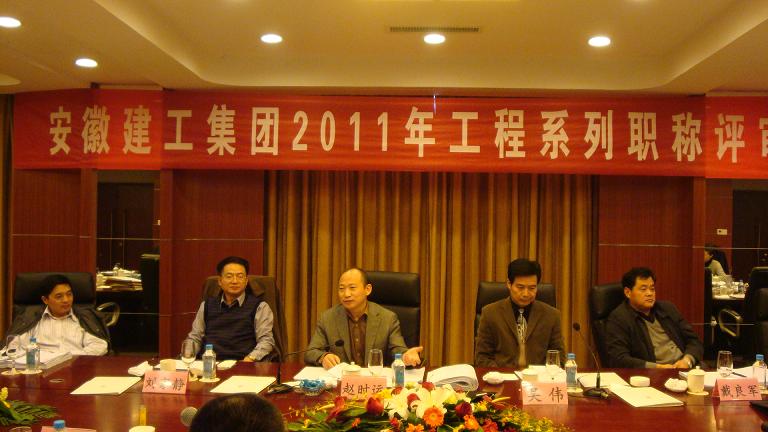 11月24日至26日,安徽建工集團2011年度工程系列職稱(chēng)評審會(huì )在安徽水利·六安沃爾特大酒店召開(kāi),集團所屬各單位的包括建筑、路橋、水利等專(zhuān)業(yè)共413名專(zhuān)業(yè)技術(shù)人員申報了職稱(chēng)評審。省人社廳專(zhuān)業(yè)技術(shù)人員管理處調研員吳偉、副處長(cháng)胡建華、省國資委人事教育處副處長(cháng)鄭洪國蒞臨會(huì )議指導,集團總經(jīng)理、集團高評委主任趙時(shí)運主持會(huì )議。