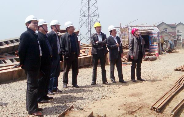 4月6日上午,安徽建工集團副總經(jīng)理、總工程師戴良軍攜總經(jīng)理助理郭道真一行,在路橋公司總經(jīng)理汪衛東、副總經(jīng)理盛明宏等陪同下,蒞臨宣貍BT項目檢查指導工作。