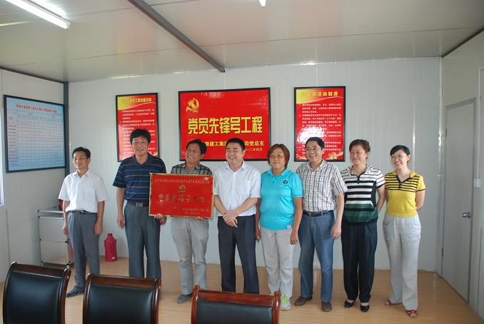 6月20日,集團公司黨委書(shū)記、董事長(cháng)胡運成親臨國內公司承建的江南產(chǎn)業(yè)集中區鳳鳴大道項目,為該項目爭創(chuàng )集團公司“黨員先鋒號工程”授牌。集團副總經(jīng)理王元曦,國內公司總經(jīng)理陳傳文及黨委工作部同志等陪同。