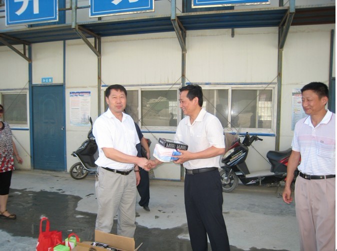 8月1日,集團公司紀委書(shū)記、工會(huì )主席牛曙東、工會(huì )副主席吳曉伍、女工委主任胡愛(ài)紅一行,在省一建黨委書(shū)記鄭軍等同志的陪同下,冒著(zhù)高溫酷暑來(lái)到通和易居花園項目部,把綠豆、白糖、毛巾等防暑降溫用品和藥品送到了一線(xiàn)職工手中。