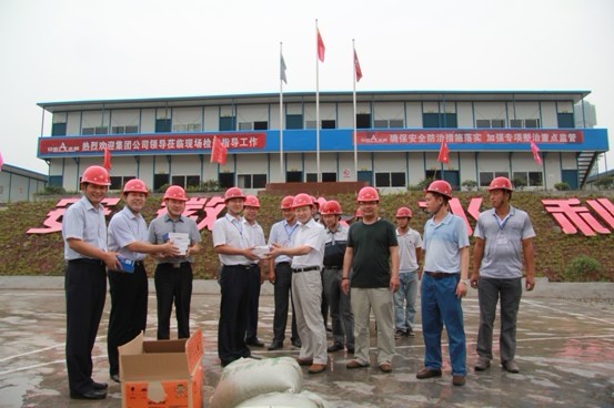 在重光縱二路項目,集團領(lǐng)導趙時(shí)運、李長(cháng)斌、牛曙東親手將綠豆、白糖、毛巾、香皂等物品送到了項目部職工手上,向遠離總部和親人的員工們送去了絲絲“清涼”。趙總一行冒著(zhù)悶熱的天氣查看了施工現場(chǎng),詳細了解了工程進(jìn)展情況以及存在的問(wèn)題,并在項目部會(huì )議室聽(tīng)取了安徽水利西南公司經(jīng)理鄭碧水同志的工作匯報,對西南公司取得的成績(jì)及班子分工實(shí)行“AB”角的做法予以了充分肯定。關(guān)于下步工作,趙總提出了五點(diǎn)要求:一是要加強班子建設,包括人員配置、崗位職責、分工合作以及班子成員自身的建設;二是要將“市場(chǎng)經(jīng)營(yíng)”放在工作首位,項目是施展水平的舞臺,對于新成立的西南公司尤其如此,要堅持“自營(yíng)聯(lián)營(yíng)”相結合,按照集團和安徽水利股份關(guān)于市場(chǎng)經(jīng)營(yíng)有關(guān)規定和要求,兩手抓、兩手硬、不偏廢,積極堅持市場(chǎng)開(kāi)放性原則;三是要抓好在建項目的管理工作,對于松潘援建項目和瀘州港等項目,要明確分工,盡快辦理結算,催要工程尾款,并在此基礎上,服務(wù)好后續市場(chǎng)的開(kāi)發(fā)工作,在深度、廣度上有所作為;四是要做好安全管理工作,要將安全生產(chǎn)工作提升到“四個(gè)安全”和“維穩”的高度,確保人的生命安全,同時(shí)高度關(guān)注資金安全和稅務(wù)風(fēng)險安全;五是要注重人才培養工作,積極通過(guò)招聘、挖潛等方式方法解決人才瓶頸以及證件問(wèn)題。