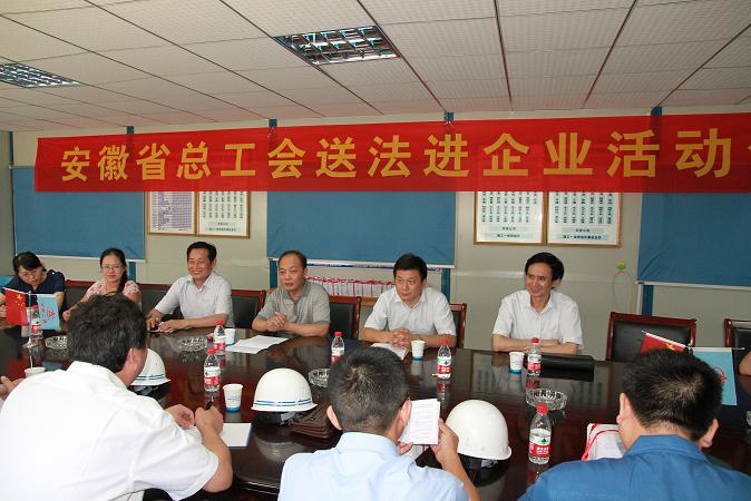 這次活動(dòng),是省總工會(huì )貫徹落實(shí)“六五”普法規劃,實(shí)施“江淮普法行”活動(dòng)的一項重要內容,旨在提高職工法律知識素養。在項目部舉行的贈書(shū)儀式上,安徽三建就工會(huì )工作及農民工權益保護、構建和諧勞動(dòng)關(guān)系等方面的做法作了匯報。許主席一行向一線(xiàn)職工贈送了法律宣傳手冊1000余本,并對在高溫季節奮戰在施工生產(chǎn)一線(xiàn)的廣大職工表示慰問(wèn),并送了慰問(wèn)金。