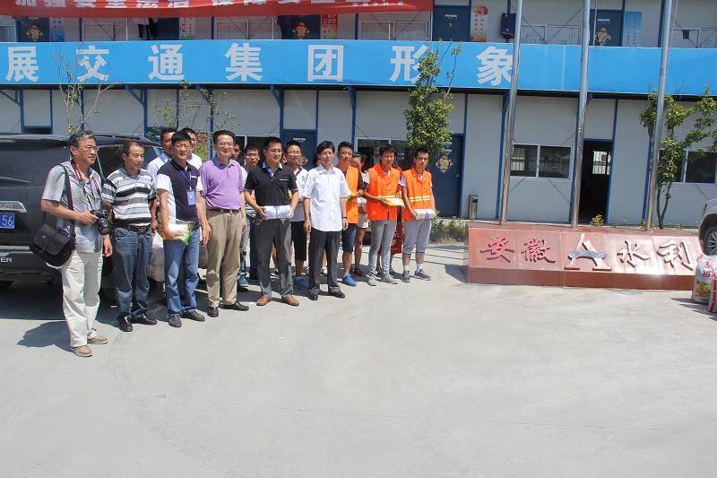 7月31日上午,驕陽(yáng)似火,酷暑炎炎。集團公司總經(jīng)理、黨委副書(shū)記、董事劉家靜在工會(huì )主席徐曉光等陪同下赴安徽水利股份公司銅南宣路面2標、安徽三建文房四寶產(chǎn)品質(zhì)量監督檢驗中心大樓工程項目部,開(kāi)展“送清涼”活動(dòng),看望和慰問(wèn)辛勤工作的一線(xiàn)職工,了解他們的生產(chǎn)、生活情況,并將綠豆、毛巾等防暑物品送到他們手中,使一線(xiàn)職工感受到企業(yè)的關(guān)懷。