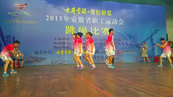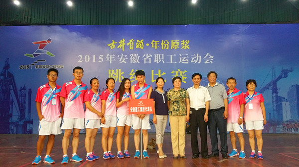 8月7日,2015年安徽省職工運動(dòng)會(huì )跳繩比賽在淮南市舉行,安徽建工集團代表隊8名運動(dòng)員,齊心協(xié)力,頑強拼搏,在4個(gè)大項的比賽中,共奪得二項冠軍、一項亞軍、二個(gè)第三名,總成績(jì)名列乙組第一,為安徽建工爭得了榮譽(yù)。