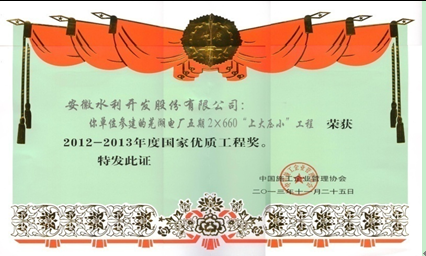 蕪湖電廠(chǎng)五期2×660“上大壓小”工程項目部--國家優(yōu)質(zhì)工程獎