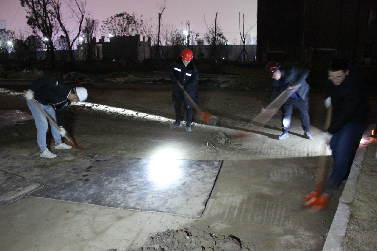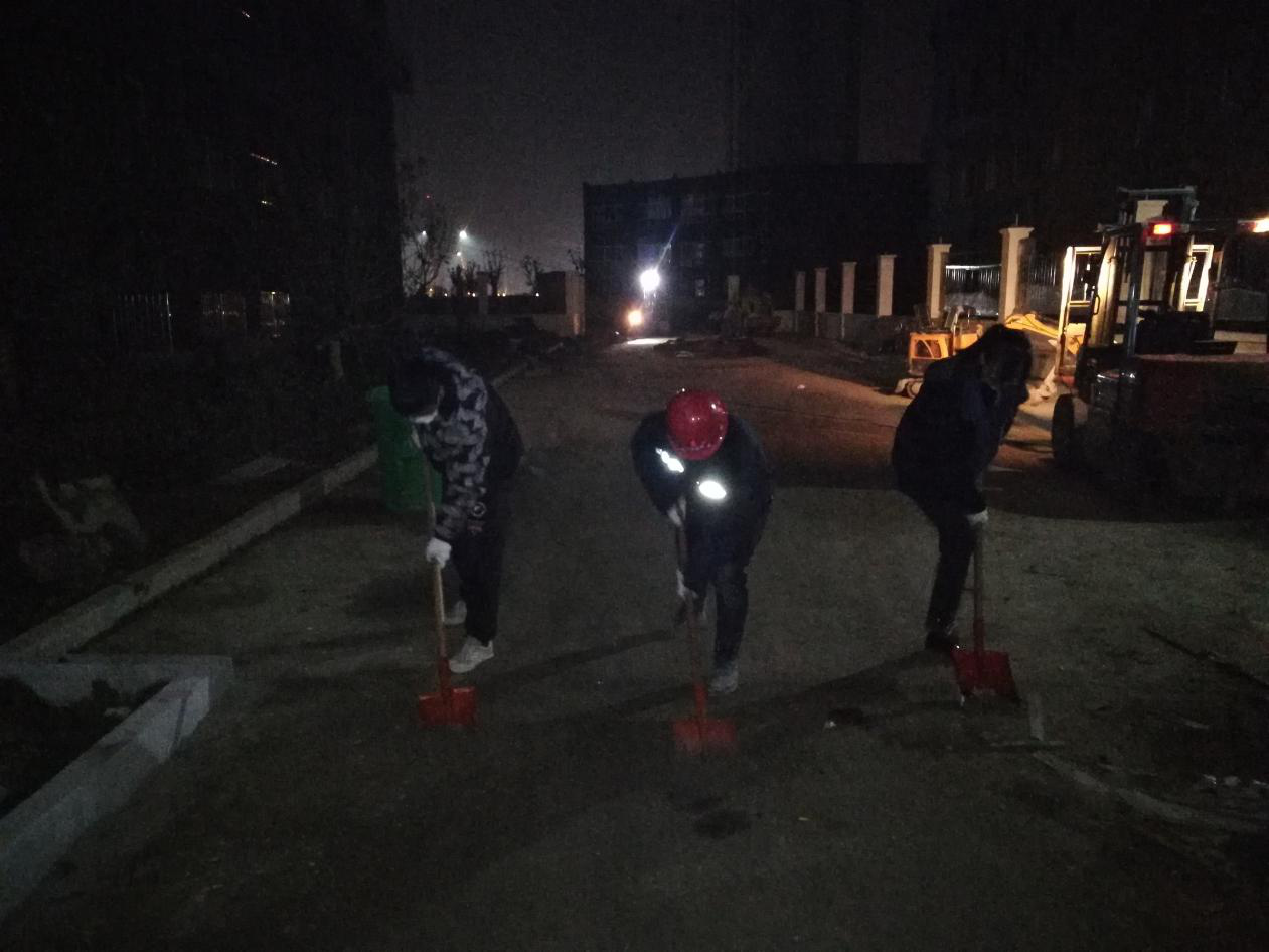 由于受到18年年末第一場(chǎng)雪“洗禮”,積雪融化,導致項目內的淤泥隨處可見(jiàn),影響后期的施工進(jìn)度。為了實(shí)現白天夜晚交叉作業(yè),晚上六點(diǎn),阜陽(yáng)公司黨支部書(shū)記、總經(jīng)理周鑫帶領(lǐng)全體黨員深入到泥土最多,工作難度較大的區域開(kāi)展路面大清潔,并要求黨員亮身份,積極發(fā)揮好先鋒模范作用。