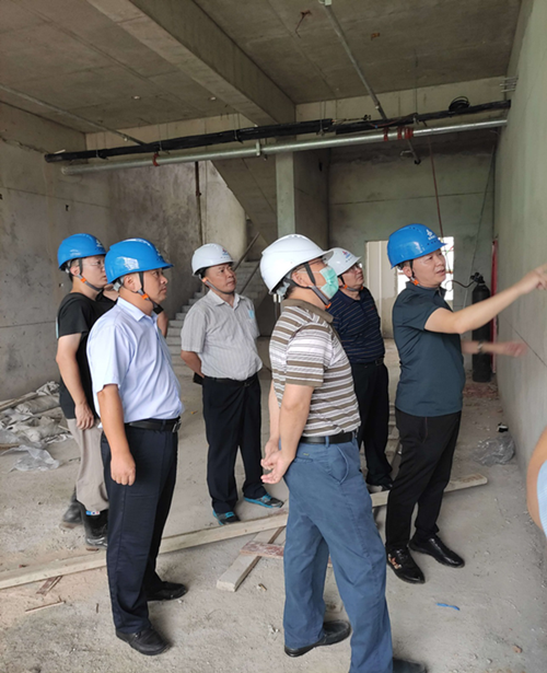 童宗勝一行深入一線(xiàn),實(shí)地查看施工現場(chǎng)工程進(jìn)度,并召開(kāi)現場(chǎng)會(huì )聽(tīng)取匯報,叮囑項目負責人要把握時(shí)間節點(diǎn),做好土建施工和裝飾工程的雙配合,全力以赴保障交付。同時(shí)指出一定要疫情防控和防暑降溫一起抓,確保工程質(zhì)量安全,拿出拳頭產(chǎn)品,打造精品工程,展現建工實(shí)力。