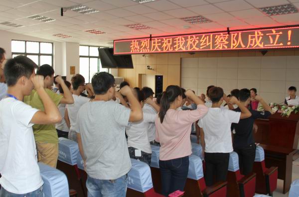 9月23日下午三點(diǎn),校衛隊成立大會(huì )在學(xué)校錄播室舉行。副校長(cháng)呂良玉、學(xué)生處處長(cháng)付書(shū)亭、建筑工程系黨支部書(shū)記李波、機電工程系黨支部書(shū)記朱曉玲、建筑經(jīng)濟管理系黨支部書(shū)記李繼萍、保衛處鮑少華老師和所有校衛隊成員參加了儀式。