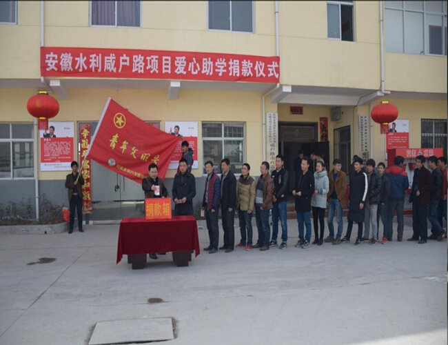 “安徽水利愛(ài)心助學(xué)基金”是經(jīng)安徽水利黨委批準,公司團委牽頭成立的一項公益助學(xué)基金,成立于2013年5月,于2014年2月由董事長(cháng)趙時(shí)運親自揭牌。在成立后的三年中,基金先后幫扶了安徽金寨一中、宿松九姑中學(xué)等近百余名次貧困學(xué)子,共捐助善款8萬(wàn)余元。