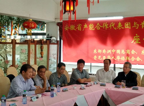 4月1日,安徽產(chǎn)能合作代表團在肯尼亞首都內羅畢與肯尼亞華人社團暨皖籍企業(yè)家舉行座談會(huì ),安徽建工集團和安徽海螺集團、江淮汽車(chē)、安徽農墾集團等在肯安徽企業(yè)的代表出席座談會(huì )。