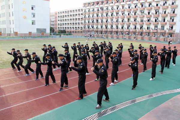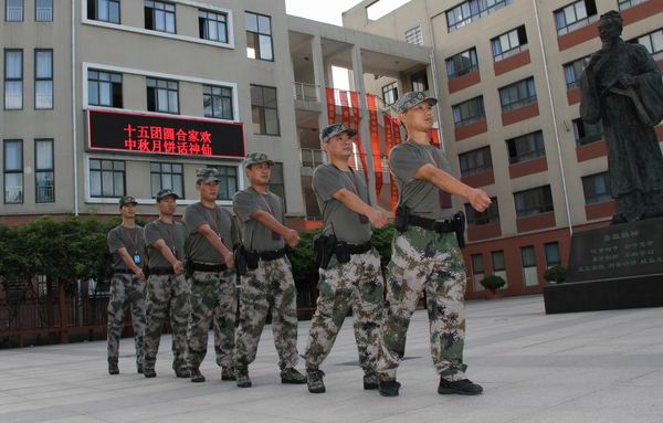 教官帶領(lǐng)校衛隊在校園內巡邏