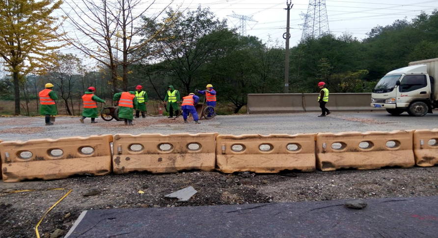 2016年11月22日下午4時(shí)許,由于連續降雨,加上G318重載車(chē)輛較多,導致臨時(shí)通行段東蓉橋兩端路基出現嚴重坑洼,影響道路通行速度及安全。為此,安徽路港G318改建工程項目經(jīng)理部迅速響應,緊急組織青年突擊隊員共計16人冒雨前去搶修。