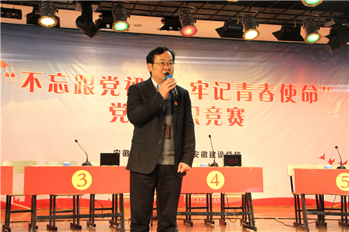 知識競賽伊始,學(xué)院黨委書(shū)記、院長(cháng)張衛東講話(huà)。他指出,院團委組織的本次黨團知識競賽緊緊圍繞學(xué)院主題教育中心,非常及時(shí),非常必要。學(xué)習黨團知識不僅可以加深同學(xué)們對黨團理論、路線(xiàn)、方針的理解,進(jìn)一步鞏固黨團基本理論和基本知識,也有利于推進(jìn)和加強黨團意識教育,引導廣大黨、團員堅定共產(chǎn)主義理想信念。他希望所有的參賽隊員和觀(guān)眾們能切實(shí)增強“四個(gè)意識”、堅定“四個(gè)自信”、做到“兩個(gè)維護”,鮮明樹(shù)立起不忘初心的標尺,堅決擔負起牢記使命的責任,熱愛(ài)祖國,熱愛(ài)學(xué)校,做新時(shí)代健康向上好青年。