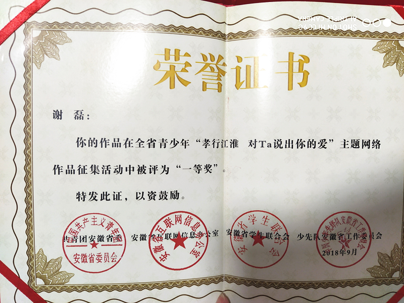 2018年團省委“孝行天下 對ta說(shuō)出你的愛(ài)”主題網(wǎng)絡(luò )作品征集活動(dòng)一等獎