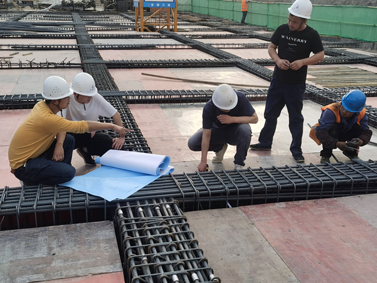 在不影響質(zhì)量的前提下要縮短工期,必須要科學(xué)組織和創(chuàng )新技術(shù)?!澳懿荒苡眯滦头浪牧蠅嚎s地下室施工工期?”第一次擔任項目技術(shù)負責人的青年職工吳鵬飛大膽提出建議。試試看!項目團隊分頭行動(dòng),查閱資料、考察市場(chǎng)、詢(xún)問(wèn)同行,尋找新材料。最終發(fā)現一種高分子自粘膠膜新型防水卷材,不僅能提高防水性能,而且能省去防水保護層的工序,至少節省了2天工期!新材料的成果極大鼓舞了項目小伙子。