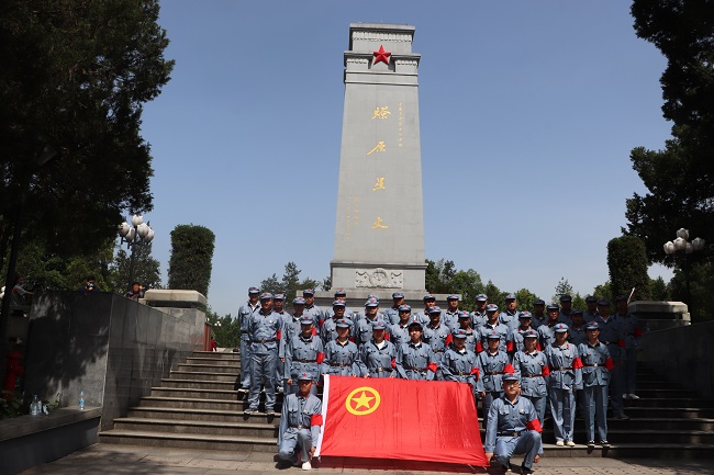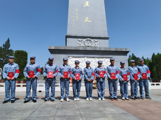 在統一換上紅軍服裝后,青年團員們首先來(lái)到金寨紅軍文化廣場(chǎng)。在革命烈士紀念塔下,面對鮮艷的中國共產(chǎn)主義青年團團旗,公司團委書(shū)記帶領(lǐng)到場(chǎng)青年團員重溫入團誓詞,牢記初心使命,緬懷革命先烈,傳承五四精神,并對榮獲公司2020年度“五四紅旗團支部”與“優(yōu)秀團員”的集體與個(gè)人進(jìn)行了表彰。