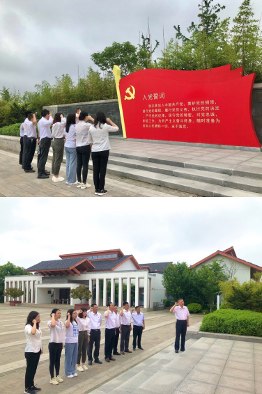 隨后,大家沿著(zhù)紅色足跡來(lái)到了沈浩同志先進(jìn)事跡陳列館,現場(chǎng)認真聆聽(tīng)了沈浩同志的先進(jìn)事跡,在他擔任村領(lǐng)導的六年中,他深入群眾、拉近距離、調研走訪(fǎng)、摸清村情,用心融入到小崗村。在為小崗村脫貧致富忙碌奔波中,三過(guò)家門(mén)而不入,吸引大學(xué)生進(jìn)村創(chuàng )業(yè)、招商引資辦工業(yè)、開(kāi)發(fā)旅游促三產(chǎn)等一系列措施,使得小崗村村民生活水平顯著(zhù)提高,文化生活豐富多彩,精神面貌煥然一新。在學(xué)習沈浩同志先進(jìn)事跡時(shí),大家無(wú)不為沈浩扎根小崗、克己奉公、干事創(chuàng )業(yè)的崇高品質(zhì)所感動(dòng),更加明白了為什么他能成為小崗村鄉親們三次按下紅手印留下的好干部、人民好公仆。在陳列館門(mén)前,黨員面對鮮紅的黨旗,重溫入黨誓詞,莊嚴宣誓。