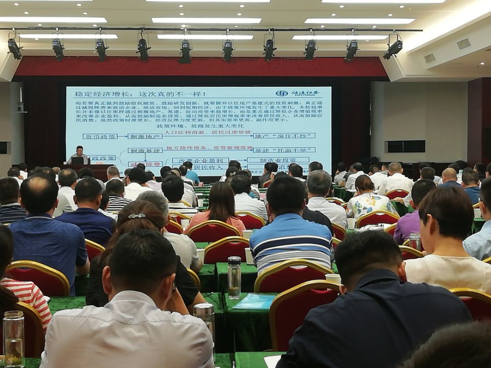 海通證券于博老師從我國國情出發(fā),緊密?chē)@人口紅利消退、舉債發(fā)展經(jīng)濟,債務(wù)周期見(jiàn)頂、去杠桿四步曲,貿易摩擦再現、短期迎來(lái)休戰,轉型勢在必行、經(jīng)濟緩慢筑底,降利率提估值、從實(shí)物到金融等五個(gè)方面,宏觀(guān)分析了國內經(jīng)濟發(fā)展情況,并對2019年下半年經(jīng)濟及資本市場(chǎng)進(jìn)行了展望。本次講座內容豐富翔實(shí)、圖文并茂,與會(huì )人員聚精會(huì )神地聆聽(tīng),并認真地做筆記。