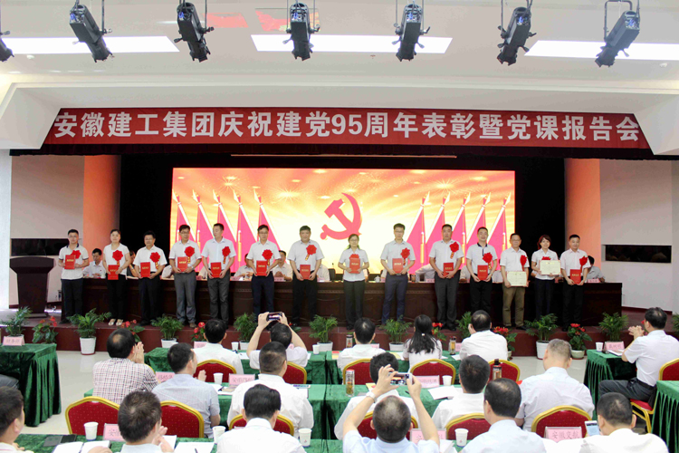 6月30日上午,安徽建工集團隆重召開(kāi)慶祝建黨95周年表彰暨黨課報告會(huì )。省國資委黨委委員、副主任項小龍應邀出席會(huì )議并講話(huà)。集團公司黨委書(shū)記、董事長(cháng)趙時(shí)運出席會(huì )議并作黨課報告。集團公司領(lǐng)導班子全體成員,所屬各單位領(lǐng)導班子成員、黨群部門(mén)負責人,集團公司機關(guān)部門(mén)負責人和機關(guān)全體黨員,受表彰的先進(jìn)基層黨組織、優(yōu)秀共產(chǎn)黨員和優(yōu)秀黨務(wù)工作者代表共約260人參加了會(huì )議。