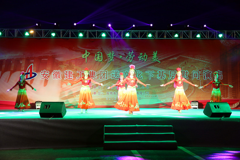 慰問(wèn)演出在安建建設公司選送的舞蹈《歡樂(lè )地跳吧》動(dòng)感活潑的旋律中正式開(kāi)始,安徽安裝公司選送的快板舞蹈《和諧建工繪宏圖》表演整齊劃一,聲聲竹板,唱出建工新氣象;由路港公司選送的小品《安全一家親》通過(guò)幽默風(fēng)趣的語(yǔ)言,在陣陣笑聲中,提示了安全責任意識,給人以啟迪;三建公司選送的情景朗誦《勞模風(fēng)采踐真情》,形象展現了甘于奉獻、爭創(chuàng )一流的勞模精神;建科院選送的現代舞《咱們工人有力量》用藝術(shù)的語(yǔ)言,歌頌了建工人的風(fēng)采和勞動(dòng)美。演出中,主持人還邀請現場(chǎng)的工友為觀(guān)眾即興演唱,博得了滿(mǎn)堂喝彩。演出結束后,觀(guān)眾們還對最受歡迎的節目進(jìn)行了現場(chǎng)投票,并進(jìn)行了現場(chǎng)觀(guān)眾幸運抽獎活動(dòng)。首場(chǎng)演出得到了協(xié)辦單位安徽省公路橋梁公司的大力支持。整場(chǎng)慰問(wèn)演出氣氛熱烈,文明歡快。