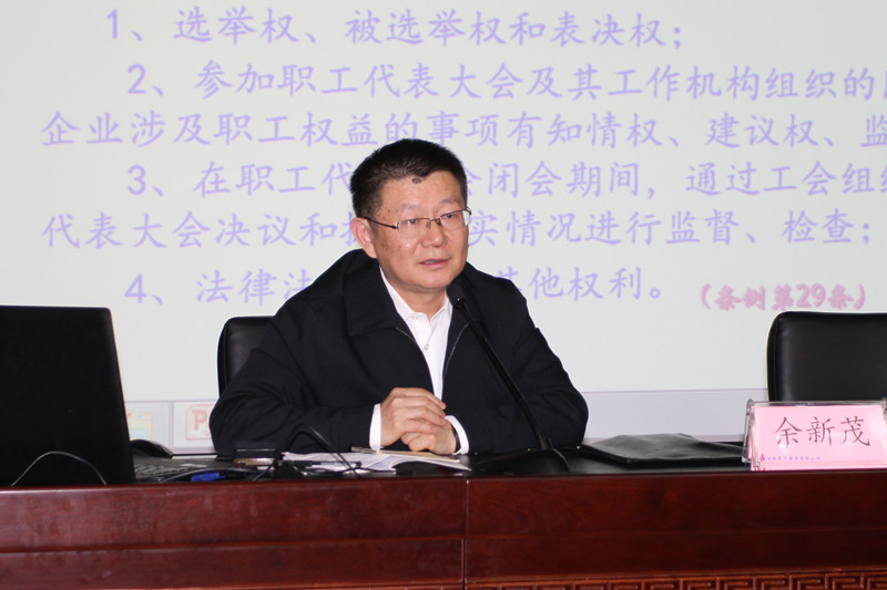 余部長(cháng)以《怎樣當職工代表》為題,講解了職工代表應履行的權利和義務(wù),以圖文并茂的形式,通過(guò)數據和事例,重點(diǎn)闡述了職工代表要有強烈的代表意識,要有一定的知識水平,要有較強的工作能力,并對職工代表撰寫(xiě)提案作了具體指導。