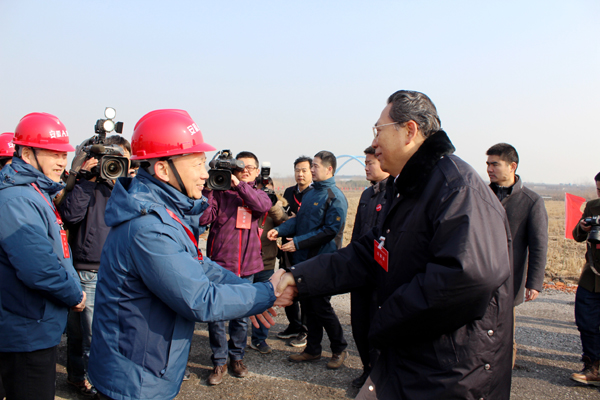 動(dòng)員會(huì )上,安徽省委書(shū)記李錦斌下達工程建設動(dòng)員令,安徽省委副書(shū)記、代省長(cháng)李國英致辭,國家發(fā)改委副主任張勇、水利部副部長(cháng)劉寧、交通運輸部副部長(cháng)何建中、河南省政府副秘書(shū)長(cháng)胡向陽(yáng)等出席并講話(huà),大會(huì )由安徽省委常委、常務(wù)副省長(cháng)吳存榮主持。安徽建工集團黨委書(shū)記、董事長(cháng)趙時(shí)運,副總經(jīng)理許克順、王厚良,總經(jīng)理助理童宗勝,安徽水利黨委副書(shū)記、紀委書(shū)記戴樹(shù)明,副總經(jīng)理楊海飛、徐少華等作為施工方代表出席大會(huì )。戴樹(shù)明同志代表施工單位現場(chǎng)宣誓。