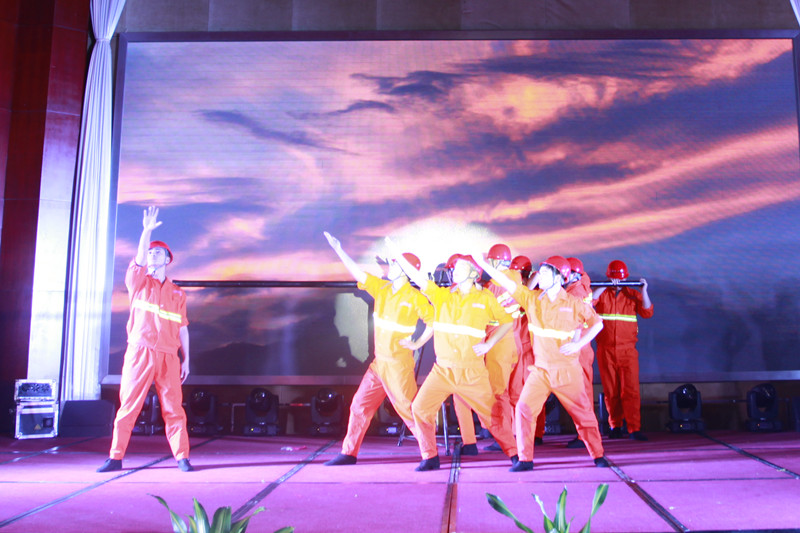 本次聯(lián)歡會(huì )共編排了15個(gè)節目,節目類(lèi)型涵蓋歌舞、戲曲和詩(shī)朗誦等,均為職工自編自演。安徽水利選送的情景舞蹈《筑夢(mèng)人》,以一個(gè)普通職工的家庭為背景,通過(guò)優(yōu)美的舞蹈,贊頌了集團公司廣大職工用智慧和汗水共筑安徽建工夢(mèng)的感人篇章;安徽路港的舞蹈《超越夢(mèng)想》,由項目部的9名青年員工借助鋼管道具,藝術(shù)地再現了一線(xiàn)施工的繁忙場(chǎng)景,力與美的展示,給觀(guān)眾極大的震撼力;集團機關(guān)的詩(shī)朗誦《辛路的歲月,歷史的豐碑》,通過(guò)表演者滿(mǎn)含深情地朗誦,歌頌了集團公司全體員工在改革發(fā)展轉型,特別是推進(jìn)集團整體上市工作展現出的誠信為本、敬業(yè)至上,團結拼搏、求實(shí)創(chuàng )新的精神風(fēng)貌;正在安徽水利和順大酒店實(shí)習的朝鮮平壤大學(xué)學(xué)生為觀(guān)眾帶來(lái)歌伴舞《阿里郎》,悠揚的旋律,專(zhuān)業(yè)的舞蹈,濃濃的異域風(fēng)情,將聯(lián)歡會(huì )氣氛推向高潮。演出期間還安排了集團公司基層各單位領(lǐng)導班子、一線(xiàn)項目部、海外項目部和本命年職工代表視頻拜年和抽獎環(huán)節。整場(chǎng)聯(lián)歡會(huì )格調高雅、形式簡(jiǎn)樸、內容豐富、氣氛熱烈,演出現場(chǎng)座無(wú)虛席,臺上的精彩表現贏(yíng)得陣陣喝彩。