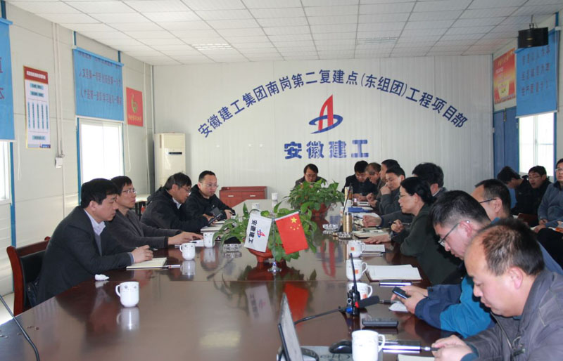 隨后在南崗科技園第二復建點(diǎn)項目會(huì )議室召開(kāi)了現場(chǎng)推進(jìn)會(huì )。會(huì )上,項目部匯報了工程進(jìn)展、工程重難點(diǎn)、成本管理、質(zhì)量管理、安全管理以及項目當前存在的問(wèn)題和下步工作安排。項目部還介紹了疊合板、塑料模板、光導照明無(wú)電系統等新技術(shù)應用情況。安建建設、安徽三建從子、分公司角度匯報了對南崗項目的管理思路、措施及工作安排。工程管理部、安監局從工期、成本、質(zhì)量、安全等方面提出了工作意見(jiàn)。