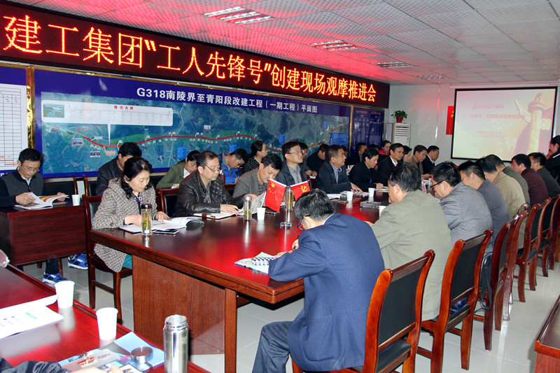 會(huì )前,與會(huì )人員實(shí)地參觀(guān)了該項目部施工現場(chǎng)、辦公區和生活區,聽(tīng)取了項目部主要負責人就項目部施工生產(chǎn)情況以及 “工人先鋒號”創(chuàng )建情況的介紹。G318改建(一期)工程項目,是池州市“十二五”重點(diǎn)交通建設項目,項目部積極響應集團公司工會(huì )和路港公司號召,以爭創(chuàng )“一流工作、一流服務(wù)、一流業(yè)績(jì)、一流團隊”為目標,緊密結合項目實(shí)際,積極組織開(kāi)展“工人先鋒號”創(chuàng )建活動(dòng),創(chuàng )建工作有組織,有方案,有目標,有措施,有成果,項目部在艱巨的生產(chǎn)任務(wù)面前,克服困難,取得了顯著(zhù)的經(jīng)濟效益和社會(huì )效益,成為一支團結戰斗的集體。安徽路港公司黨委書(shū)記馬斌發(fā)表熱情洋溢的講話(huà),對各單位代表的到來(lái)表示熱烈的歡迎,對路港公司生產(chǎn)經(jīng)營(yíng)和創(chuàng )建“工人先鋒號”情況作了介紹,表示要加強交流,共同推動(dòng)“工人先鋒號”建設工作深入開(kāi)展。