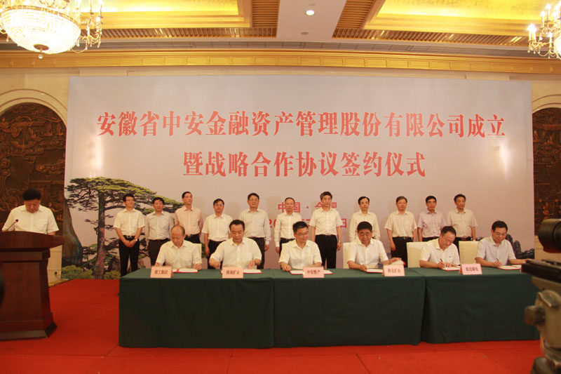 7月28日下午,安徽省中安金融資產(chǎn)管理股份有限公司成立暨戰略合作協(xié)議簽約儀式在合肥舉行。安徽省委常委、組織部部長(cháng)、常務(wù)副省長(cháng)鄧向陽(yáng),中國信達資產(chǎn)管理公司總裁陳孝周等人出席儀式并見(jiàn)證簽約。簽約儀式由省政府副秘書(shū)長(cháng)李必方主持。省財政廳、省國資委、省政府金融辦、省銀監局等相關(guān)省直單位參加簽約儀式。