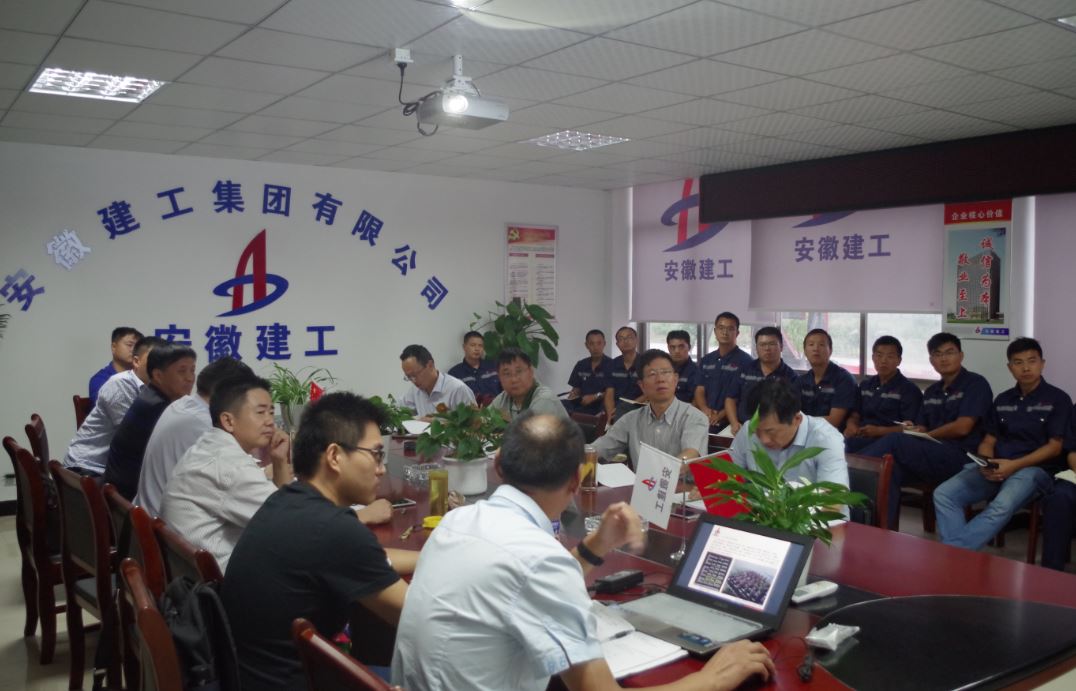 調研會(huì )上,王總一行聽(tīng)取了安建建設、安徽路橋、安建設計、安徽建科關(guān)于涇縣EPC項目的工作匯報,集團公司工程管理部、安監局從各自職能出發(fā)提出了工作意見(jiàn)。