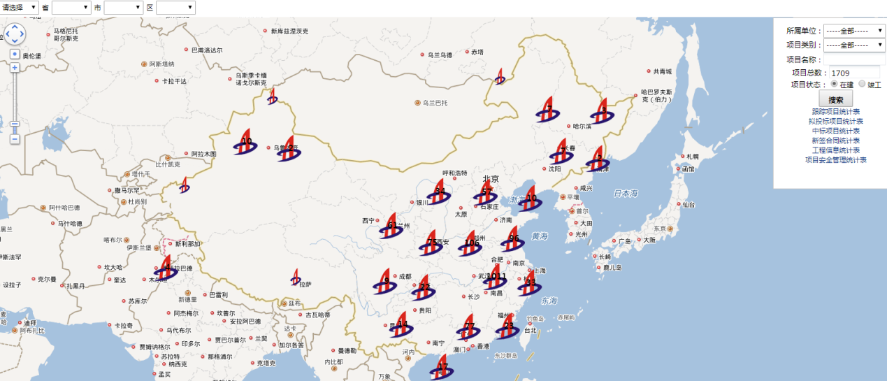 為了優(yōu)化系統性能速度,改善用戶(hù)使用體驗,經(jīng)過(guò)集團信息管理部一個(gè)月時(shí)間的加班加點(diǎn)研發(fā),對百度地圖海量點(diǎn)聚合算法的實(shí)現過(guò)程進(jìn)行分析、討論和模擬調試,在實(shí)現海量標注點(diǎn)聚合展示的基礎上對聚合顯示和算法具體的實(shí)現過(guò)程進(jìn)行了深度優(yōu)化,顯著(zhù)提升地圖的響應速度和性能。標注更加明顯,使用更加便捷。項目相對集中的位置會(huì )自動(dòng)聚合并在logo上顯示項目數量,同時(shí)支持點(diǎn)擊進(jìn)入和放大進(jìn)入?;诤A奎c(diǎn)聚合算法的PC端集團實(shí)時(shí)項目地圖系統V2.0版系統能達到上萬(wàn)項目和工程詳細信息的毫秒級別標注和信息展示功能。