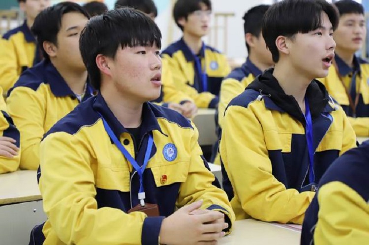 “紅星閃閃放光彩,紅星燦燦暖胸懷,紅星是咱工農的心,黨的光輝照萬(wàn)代!”……每到晚自習時(shí)間,安徽建工技師學(xué)院汽車(chē)與機電技術(shù)系各班的教室中就會(huì )傳來(lái)嘹亮的歌聲。