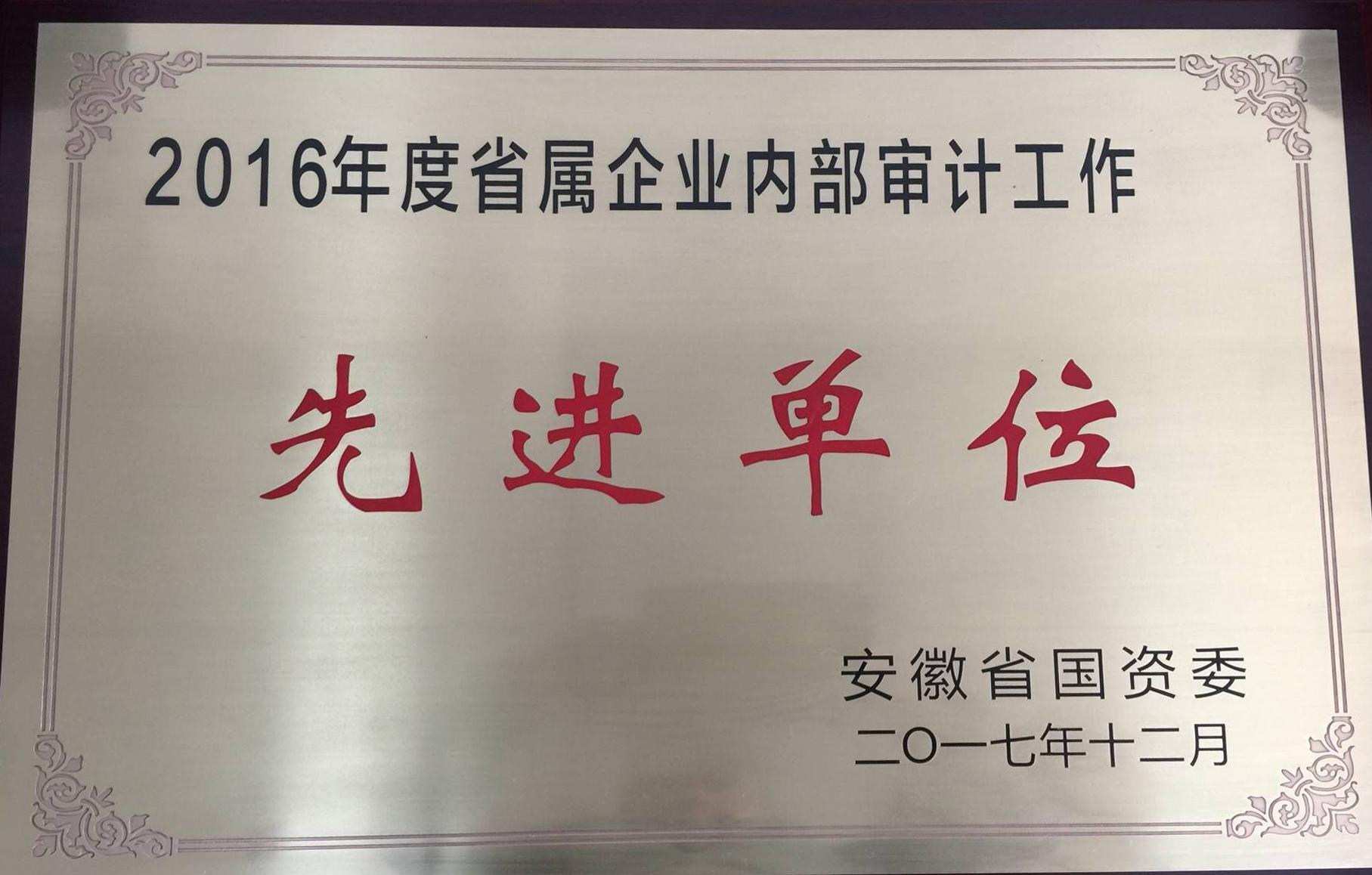 日前,在省國資委召開(kāi)的年度內審工作總結會(huì )上,安徽建工集團再次獲得“省屬企業(yè)內部審計工作先進(jìn)單位”稱(chēng)號,這是集團公司連續第五年獲得國資委內審先進(jìn)單位(個(gè)人)榮譽(yù)。