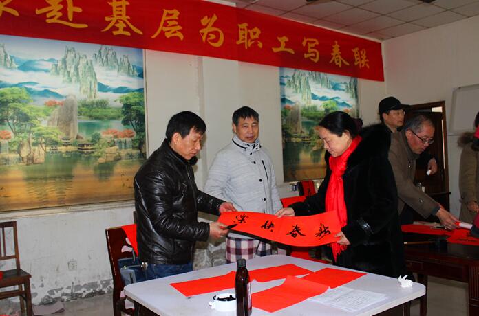 活動(dòng)中,安徽建工的書(shū)法家們揮毫潑墨,為職工群眾現場(chǎng)書(shū)寫(xiě)了各類(lèi)春聯(lián)300余幅,用飄散著(zhù)清新墨香的一副副寓意吉祥的春聯(lián),為職工送上了新春的美好祝福。小區的職工群眾通過(guò)活動(dòng)海報提前知曉了本次活動(dòng),活動(dòng)一開(kāi)始,大家紛紛來(lái)到現場(chǎng),欣賞職工書(shū)法家的作品,挑選自己喜愛(ài)的春聯(lián)。一幅幅技藝精湛、韻致生動(dòng)的春聯(lián)為春節的到來(lái)營(yíng)造了健康文明祥和、積極向上的節日氛圍。