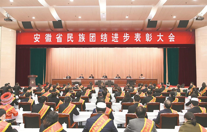 12月14日上午,安徽省民族團結進(jìn)步表彰大會(huì )在合肥隆重舉行。本報記者 吳文兵 攝