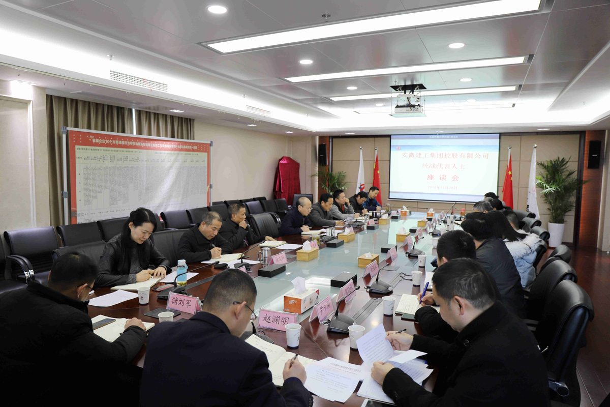 12月29日上午,安徽建工集團控股有限公司召開(kāi)統戰代表人士座談會(huì ),傳達學(xué)習中央和省委有關(guān)統戰工作會(huì )議精神,聽(tīng)取所屬單位統戰代表人士建言獻策,安排部署下一階段統戰工作。集團公司領(lǐng)導趙時(shí)運、牛曙東、宋志華、申玉恩出席會(huì )議,集團系統部分民主黨派和黨外知識分子、集團機關(guān)有關(guān)部門(mén)負責人參加會(huì )議。會(huì )議由建工控股黨委副書(shū)記牛曙東主持。