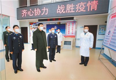 中華民族傳統節日春節即將來(lái)臨之際,中共中央總書(shū)記、國家主席、中央軍委主席習近平2月4日視察空軍航空兵某師,看望慰問(wèn)部隊官兵,代表黨中央和中央軍委,向全體人民解放軍指戰員、武警部隊官兵、軍隊文職人員、民兵預備役人員致以誠摯問(wèn)候和新春祝福。這是習近平到場(chǎng)站醫院了解部隊疫情防控和支援地方防疫情況。