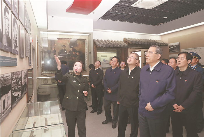 紅二十五軍于1931年10月在金寨麻埠組建,1932年11月底重建,是鄂豫皖蘇區的一支主力部隊,被譽(yù)為“長(cháng)征先鋒”。來(lái)到紅二十五軍軍政機構舊址,李錦斌、王清憲、張昌爾等在一幅幅泛黃的黑白照片中,重溫一段段刻骨銘心的革命故事。李錦斌強調,大別山區革命歷史悠久,紅色文化厚重。要充分利用好紅色資源,講述好紅色故事,教育引導廣大黨員干部從黨史中汲取持久深厚的奮斗之力,堅定不移聽(tīng)黨話(huà)、跟黨走,以身許黨許國、報黨報國。