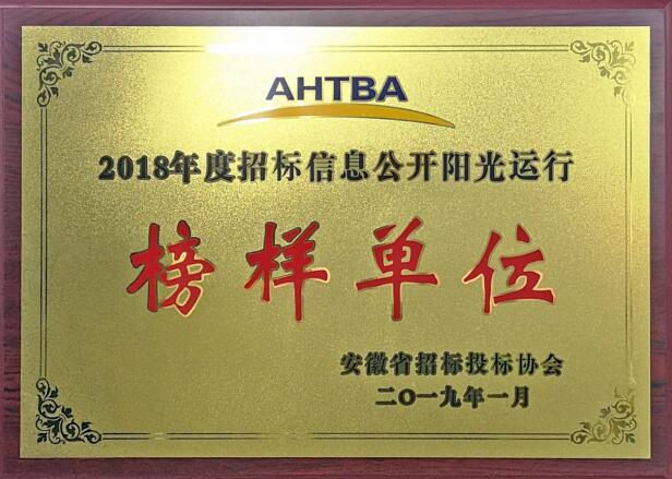 近日,安徽省招標投標協(xié)會(huì )第二屆會(huì )員代表大會(huì )第三次會(huì )議暨第二屆理事第四次會(huì )議在合肥順利召開(kāi),會(huì )上,集團公司被授予“2018年度招標信息公開(kāi)陽(yáng)光運行榜樣單位”榮譽(yù)稱(chēng)號。
