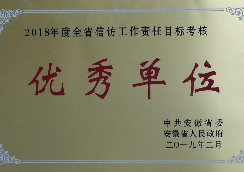 2月21日上午,省委、省政府在合肥召開(kāi)了全省信訪(fǎng)工作會(huì )議。安徽建工集團控股有限公司被省委、省政府授予“2018年度全省信訪(fǎng)責任目標管理考核優(yōu)秀單位”榮譽(yù)稱(chēng)號,這是集團公司連續第六年獲得此項殊榮。