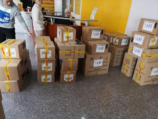 由于采購的防疫物資數量大,而又恰逢周末,貨運公司人手不足。為爭分奪秒,縮短物資發(fā)運時(shí)間,采購小組主動(dòng)前往DHL航空貨運公司,協(xié)助貨運公司工作人員對防疫物資進(jìn)行分裝、打包、貼簽。然而難題又出現了,按照貨運公司規定,大宗物資必須分批次進(jìn)行報關(guān)發(fā)貨,這樣好不容易采購到的防疫物資就不能全部在第一時(shí)間內抵達國內。經(jīng)過(guò)討論和咨詢(xún),并與貨運公司反復協(xié)商,駐阿經(jīng)理部決定以公司名義辦理報關(guān),并迅速整理遞交了報關(guān)資料,全力協(xié)助DHL貨運公司發(fā)運防疫物資,最大限度確保防疫物資盡快運抵國內。