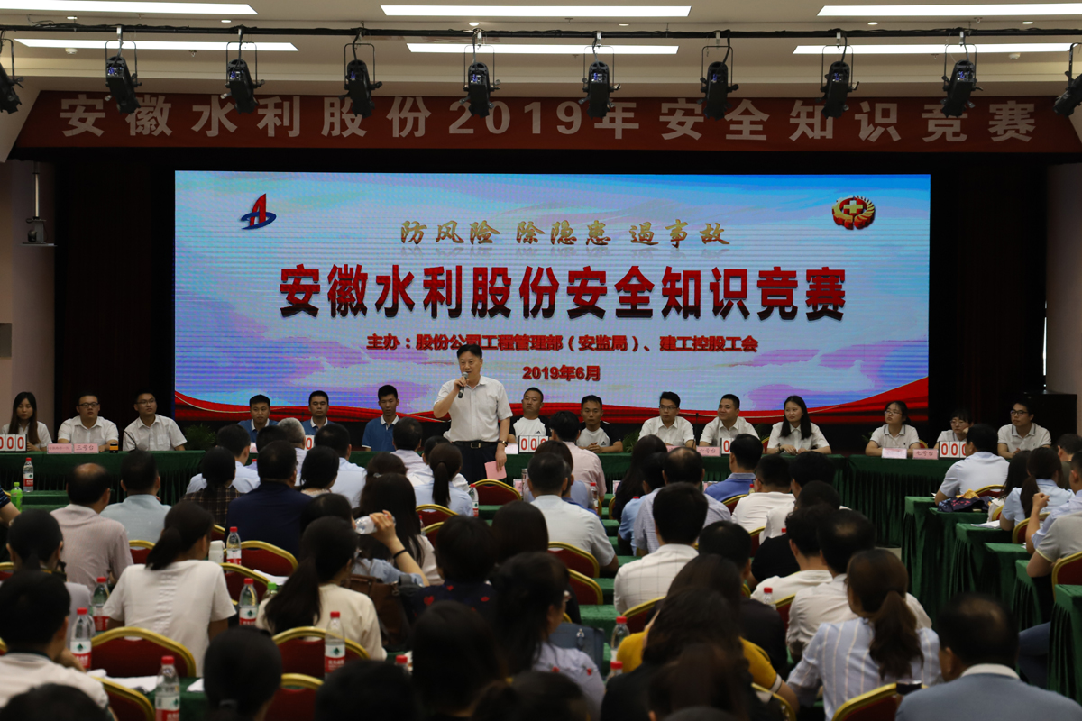 6月12日下午,由控股工會(huì )、股份公司工管部(安監局)聯(lián)合舉辦的安徽水利股份安全知識競賽在安建國際大廈三樓報告廳如期舉行。建工控股黨委委員、股份公司總經(jīng)理許克順出席活動(dòng)并致開(kāi)幕詞,股份公司副總經(jīng)理孫學(xué)軍、安徽省建設建材工會(huì )主任程德旺、副主任葉雪清受邀出席活動(dòng)。
