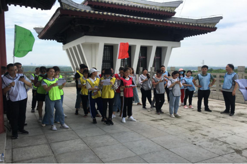學(xué)習活動(dòng)結束后,大家稍作休息,來(lái)到“金湯虎臺”,站在“城樓”之上,俯瞰遠方,想象著(zhù)當年的滿(mǎn)寵將軍戰鼓陣陣、兵馬如林的場(chǎng)景,大家心中不禁升起一股濃郁豪情。緊接著(zhù),在拓展教練的引領(lǐng)下,全體人員進(jìn)行了簡(jiǎn)短而富有趣味的熱身活動(dòng)和小游戲,身心得到了完全的舒展。隨后大家被分成兩隊,通過(guò)發(fā)揮團隊合力分別制作了隊旗、隊徽,精彩展示了口號和隊形,協(xié)作完成了漢諾塔團隊任務(wù),在活動(dòng)中增進(jìn)了情感交流,提升了團隊凝聚力戰斗力。最后,機關(guān)黨支部還精心組織開(kāi)展了黨建知識快問(wèn)快答比賽,這是一場(chǎng)智慧和腦力的比拼,更是一次加強政治學(xué)習、鞏固黨建知識的大好機會(huì ),6個(gè)小組奮勇?tīng)幭?,現場(chǎng)氣氛十分熱烈,通過(guò)6輪緊張激烈的競答環(huán)節最終決勝出團體第一、二、三名,充分展現了安徽建科機關(guān)黨支部黨員深厚的政治理論功底和斗志昂揚的精神狀態(tài)。