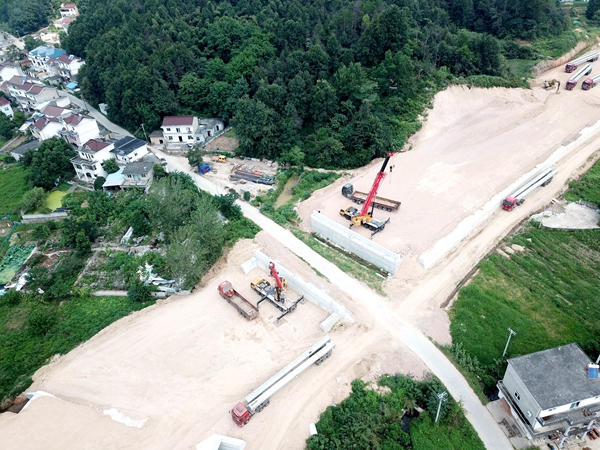 截至目前,萬(wàn)羅山梁板架設、赤嶺一橋及復興橋下構、郭家橋立柱施工已全部完成,水穩站基礎施工提前啟動(dòng)。