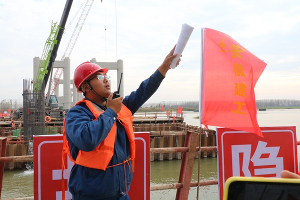 固蚌、蕪黃高速作為省委省政府規劃的“縣縣通高速”,將在2021年建成通車(chē),這對于今年3月份項目才正式開(kāi)工的全體建設者來(lái)說(shuō),無(wú)疑是個(gè)巨大挑戰。在淮河岸邊、澮河之上,青年黨員陸志康正在組織打樁機施工?!皾液犹卮髽蜷L(cháng)2.6km,是安徽省首座組合梁系桿拱橋,引橋采用鋼板組合梁,建成后將成為澮河上的新地標,”他自信地說(shuō)。不論是疫情防控后的復工復產(chǎn),還是抗洪期間,他都始終沖鋒在前,白天在一線(xiàn)蹲守,晚上研究解決問(wèn)題的辦法。圓月初升,各個(gè)工位上的聚光燈,點(diǎn)燃寂靜夜空,將夜晚照得如同白晝明亮,陸志康乘著(zhù)夜色仍在混凝土澆筑工點(diǎn),忘記了時(shí)間,只為了一個(gè)目標,就是要把項目又好又快建成。